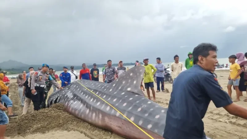 Tulungagung, Lumineerdaily – Warga Pantai Bayem, Desa Keboireng, Kecamatan Besuki, Rabu (19/11/2025) sore, dikejutkan oleh pemandangan tak biasa: seekor hiu tutul (Rhincodon typus) raksasa terdampar di bibir pantai, dalam kondisi mati. Hewan laut yang dilindungi ini pertama kali terlihat sekitar pukul 14.00 WIB, sebelum akhirnya laporan diteruskan ke pihak berwenang.