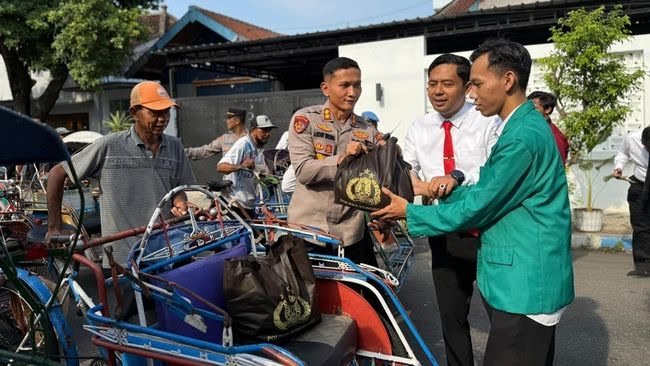Sebanyak 250 paket bantuan sembako diserahkan secara langsung kepada para tukang becak yang berkumpul di depan gerbang Mapolres Ponorogo. Kegiatan ini dipimpin Kapolres Ponorogo AKBP Andin Wisnu Sudibyo, S.I.K., M.H., dan dihadiri Pejabat Utama (PJU) Polres, pengurus Bhayangkari Cabang Ponorogo, serta perwakilan mahasiswa.