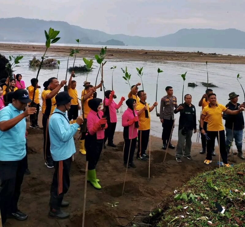 TRENGGALEK, lumineerdaily.com – Upaya mitigasi kerusakan lingkungan pesisir mulai diperkuat di kawasan selatan Jawa Timur. Polres Trenggalek bersama Bhayangkari melakukan penanaman ratusan mangrove di Pantai Cengkrong sebagai bagian dari strategi menjaga ekosistem sekaligus menahan dampak abrasi.