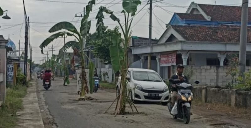 TULUNGAGUNG – Kekecewaan warga Lingkungan 8, Desa Ngunut, Kecamatan Ngunut, Kabupaten Tulungagung, memuncak. Puluhan pohon pisang ditanam di badan jalan kabupaten yang rusak parah sebagai bentuk protes atas lambannya penanganan perbaikan.
